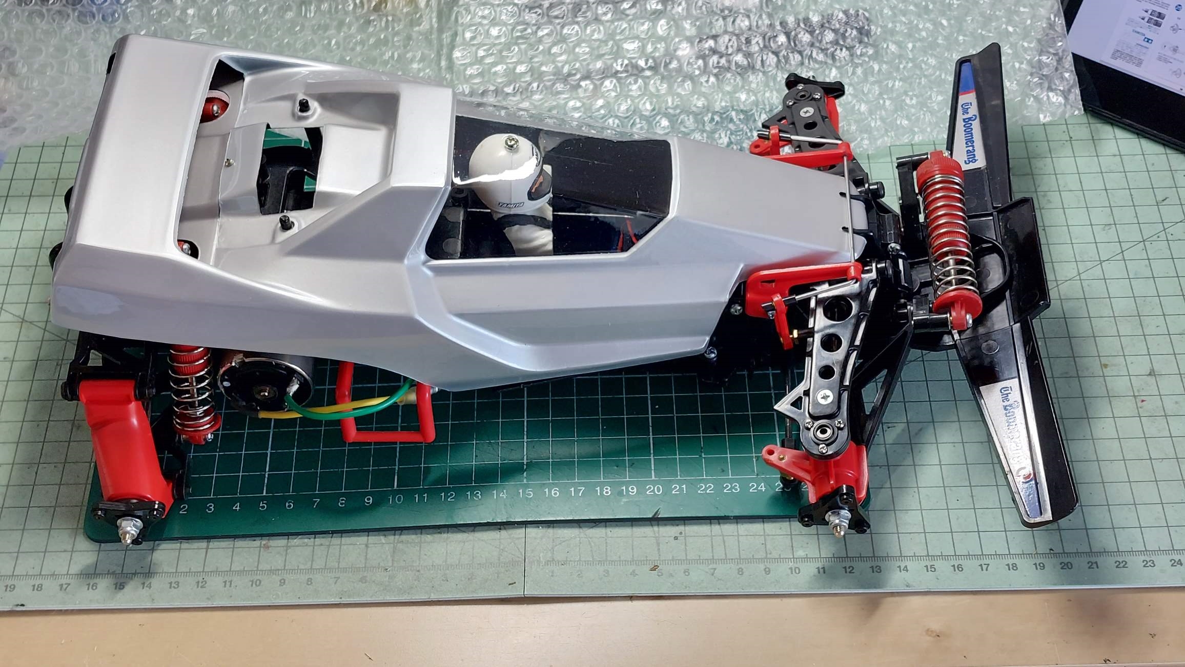 Je vais presque blasphémer, mais les stickers MCI se sont posés plus facilement que mes derniers TAMIYA / Kyosho / etc. (avec la même méthode : eau savonneuse)