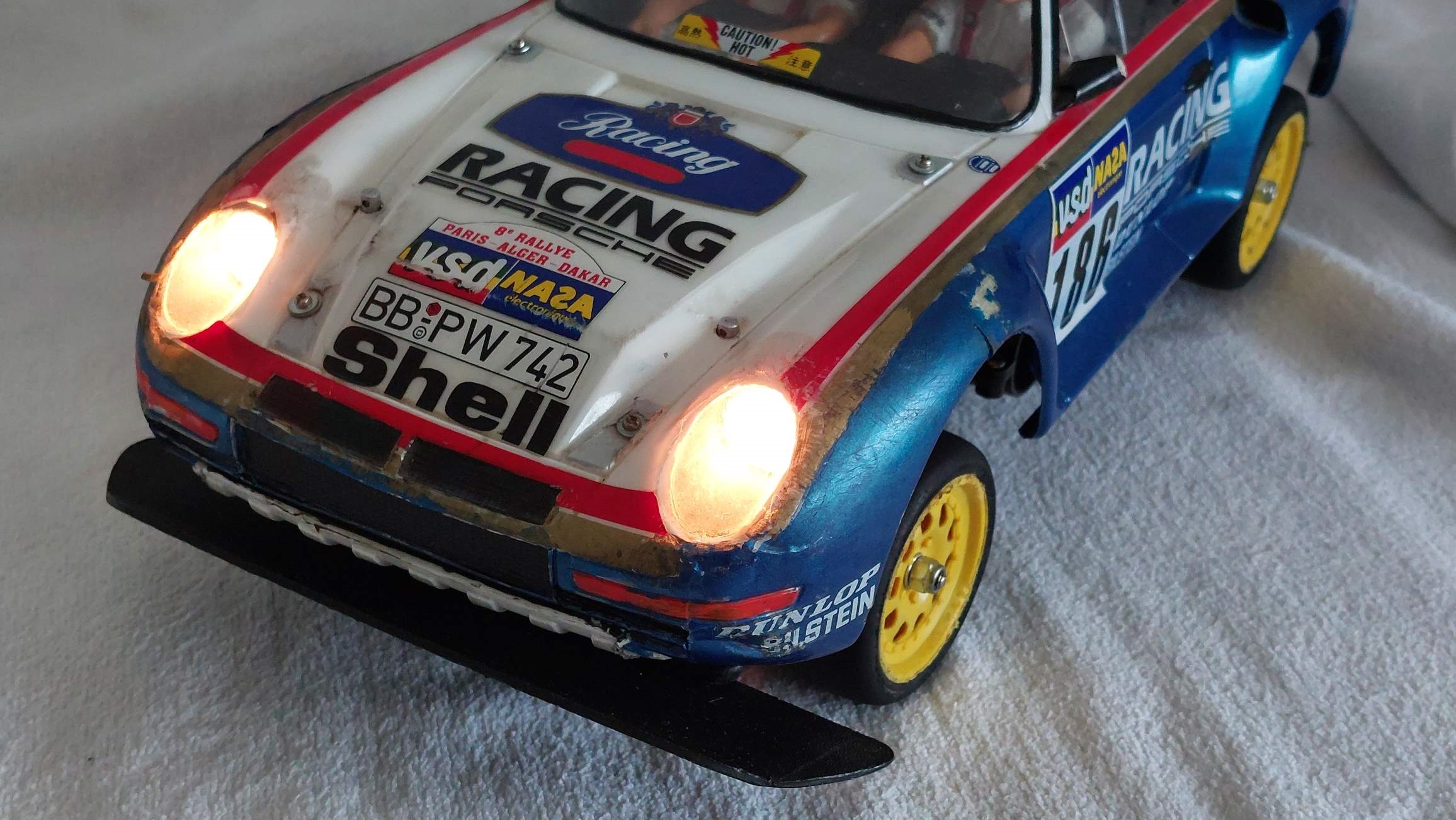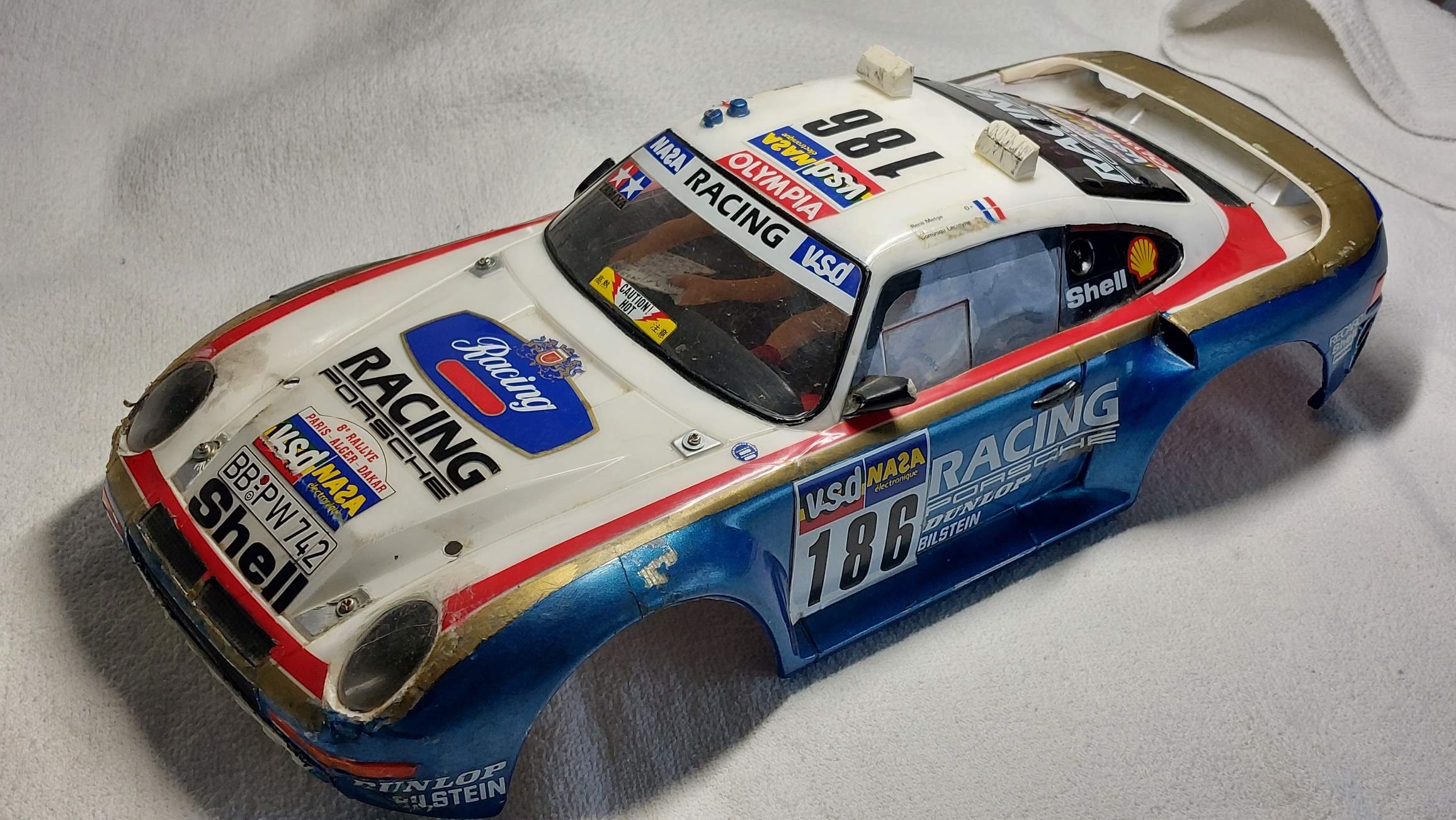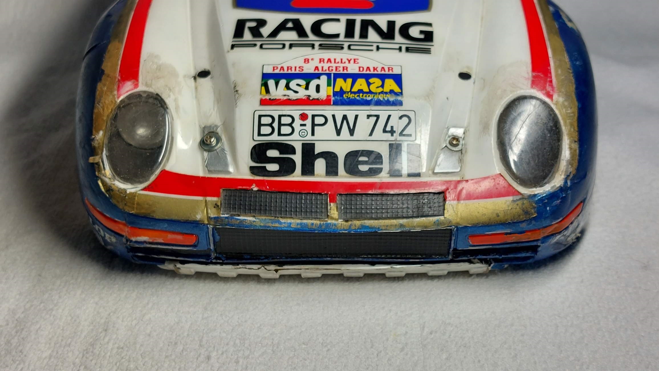 Un très bref historique de la vraie voiture, il s'agit de la Porsche 959 qui a gagné le Paris-Dakar en 1986, l'un des plus durs et tragiques d'ailleurs.